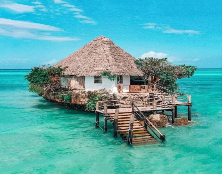 The rock restaurant is located on a small rock information off the coasts of michamvi pingwe beach in the south east of Zanzibar, Tanzania, surrounded by the Indian ocean. Guest can reach the unique dining spot by walking through the shallow water during low tide or by boat during high tide. Operational days: All days.